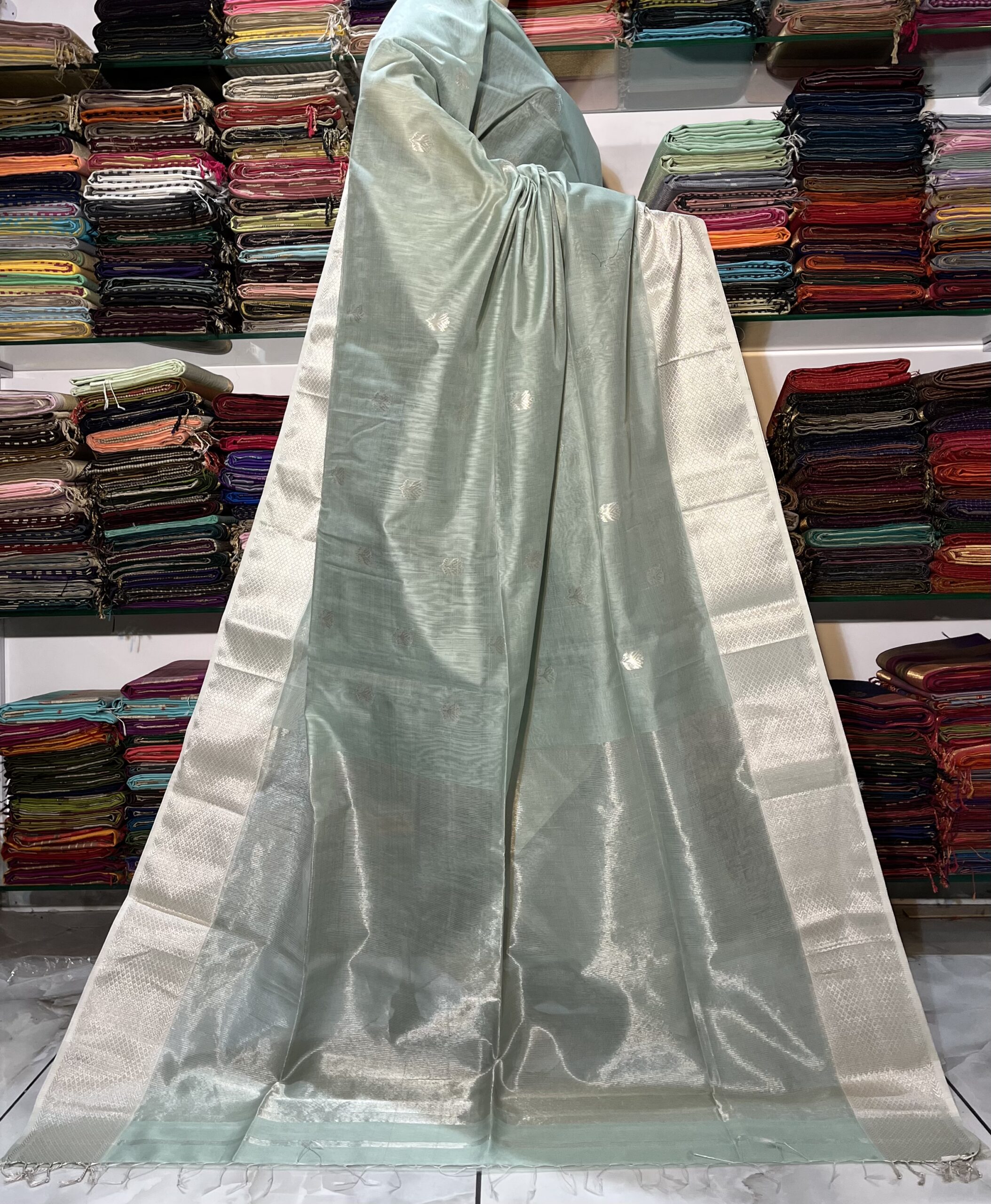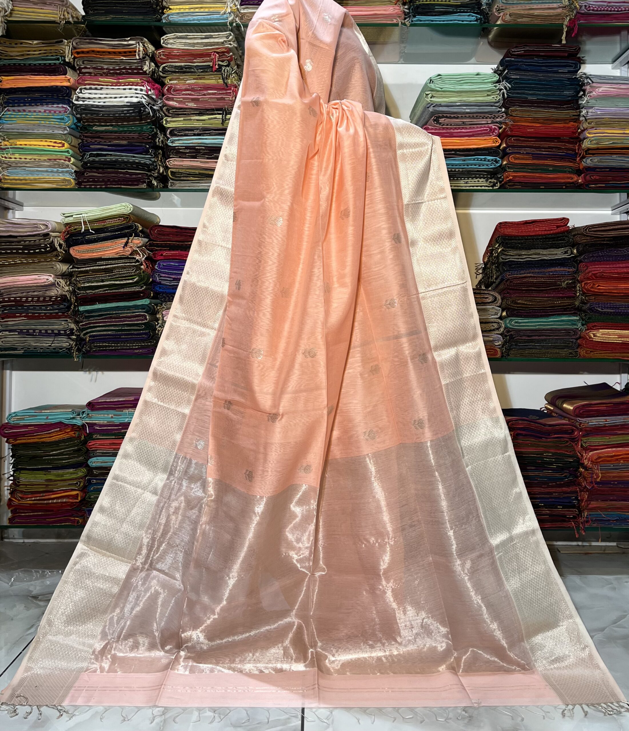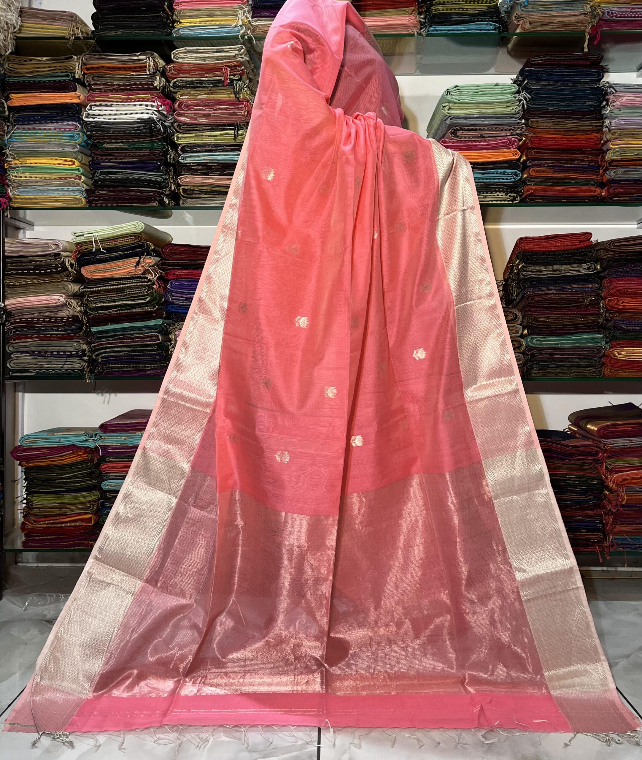 Be the first to review “Maheshwari All Over Zari Lotus Buti Saree”