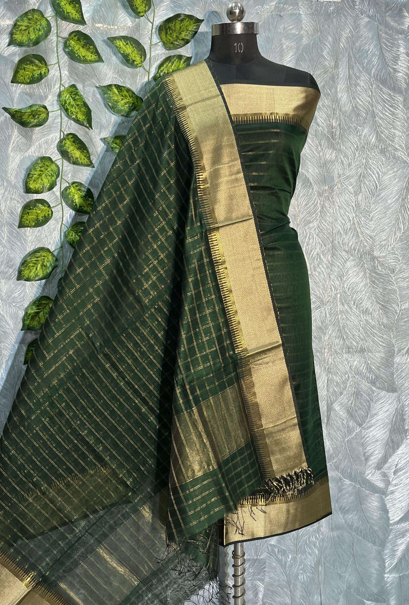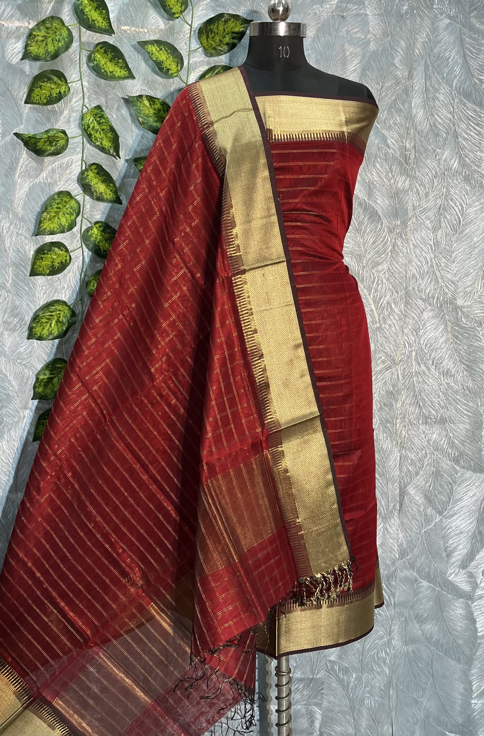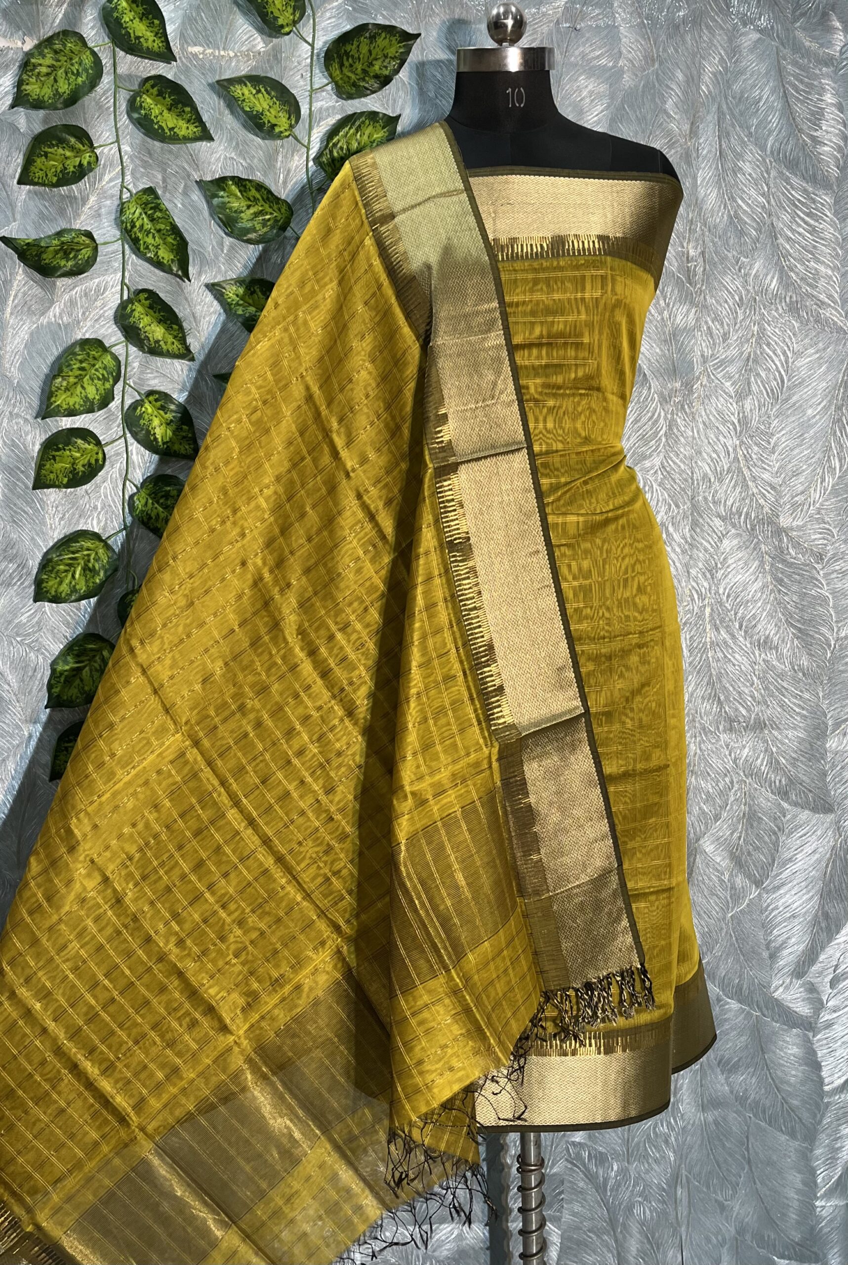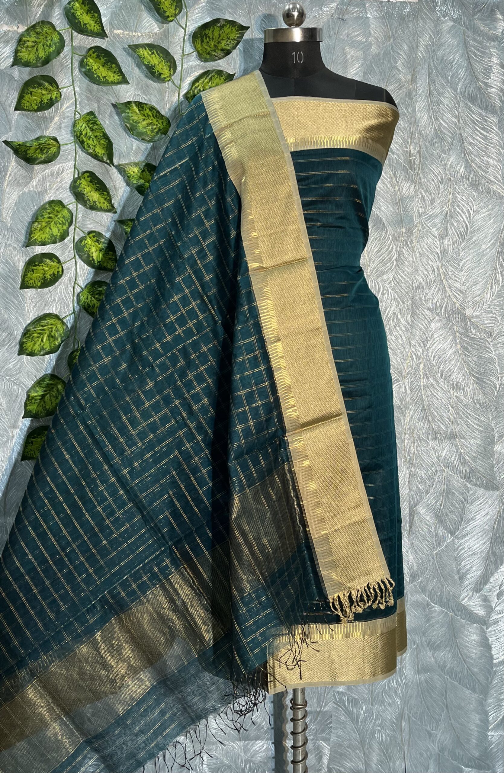 Maheshwari Kali Border Chex Top & Dupatta Dress Material