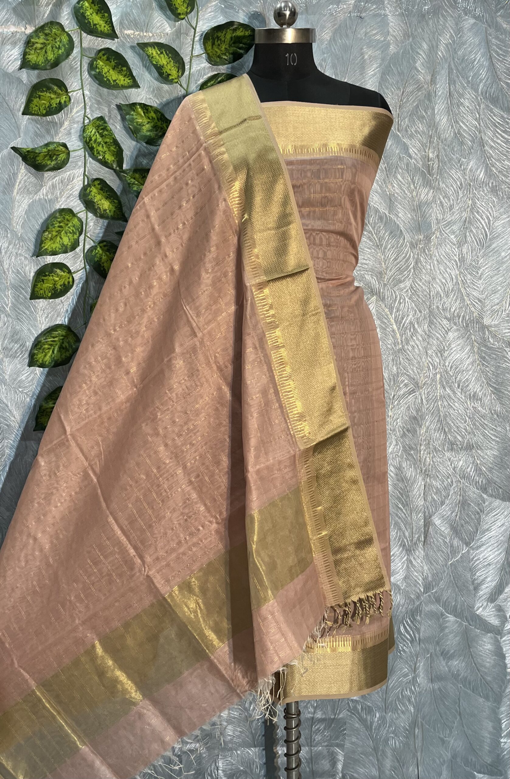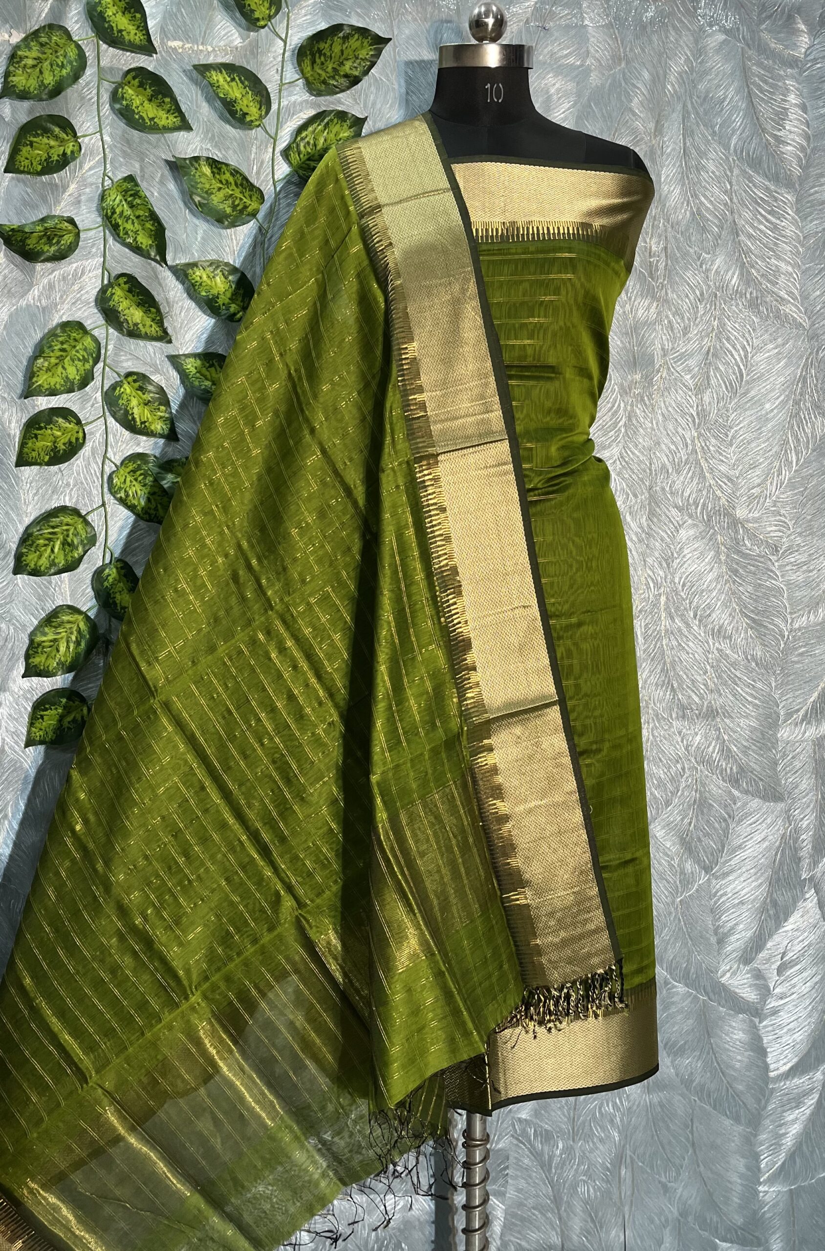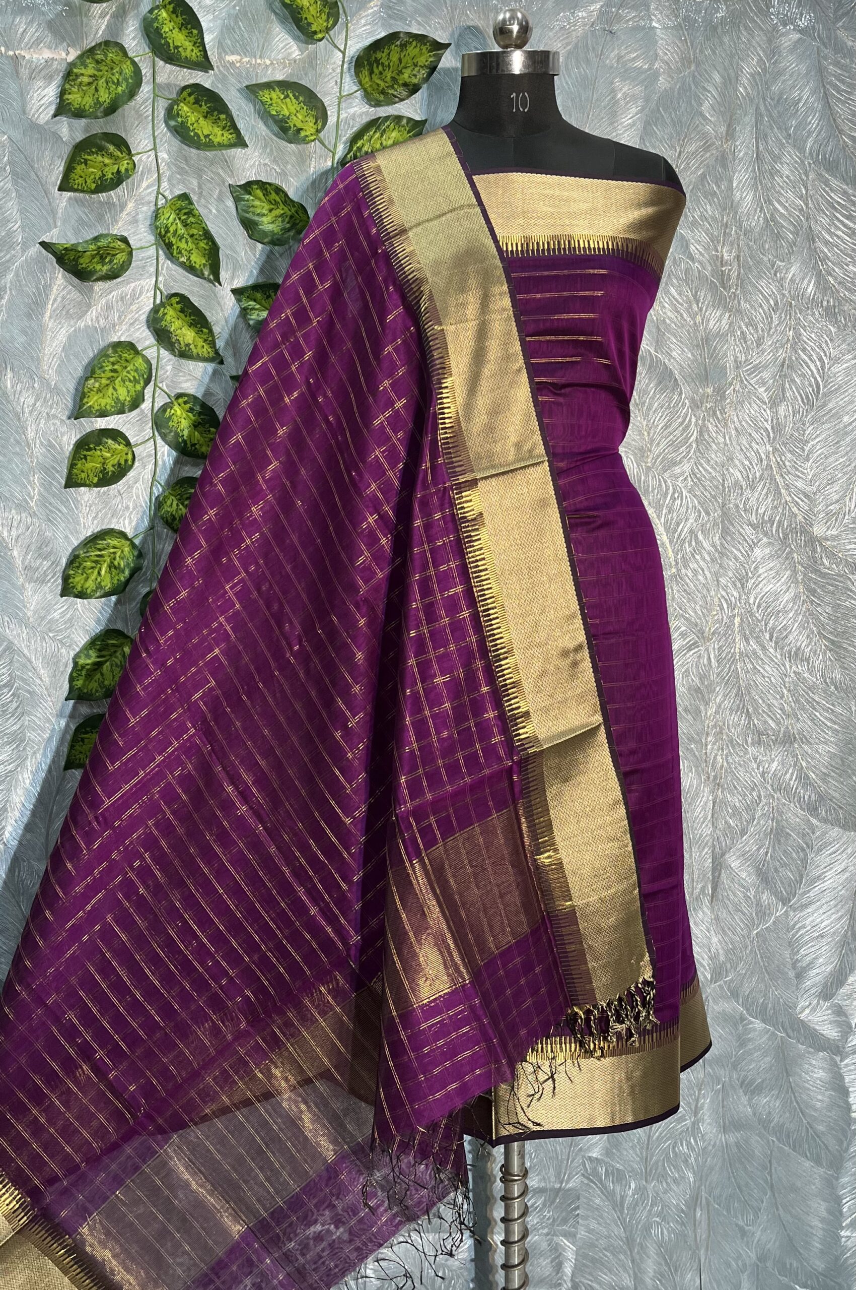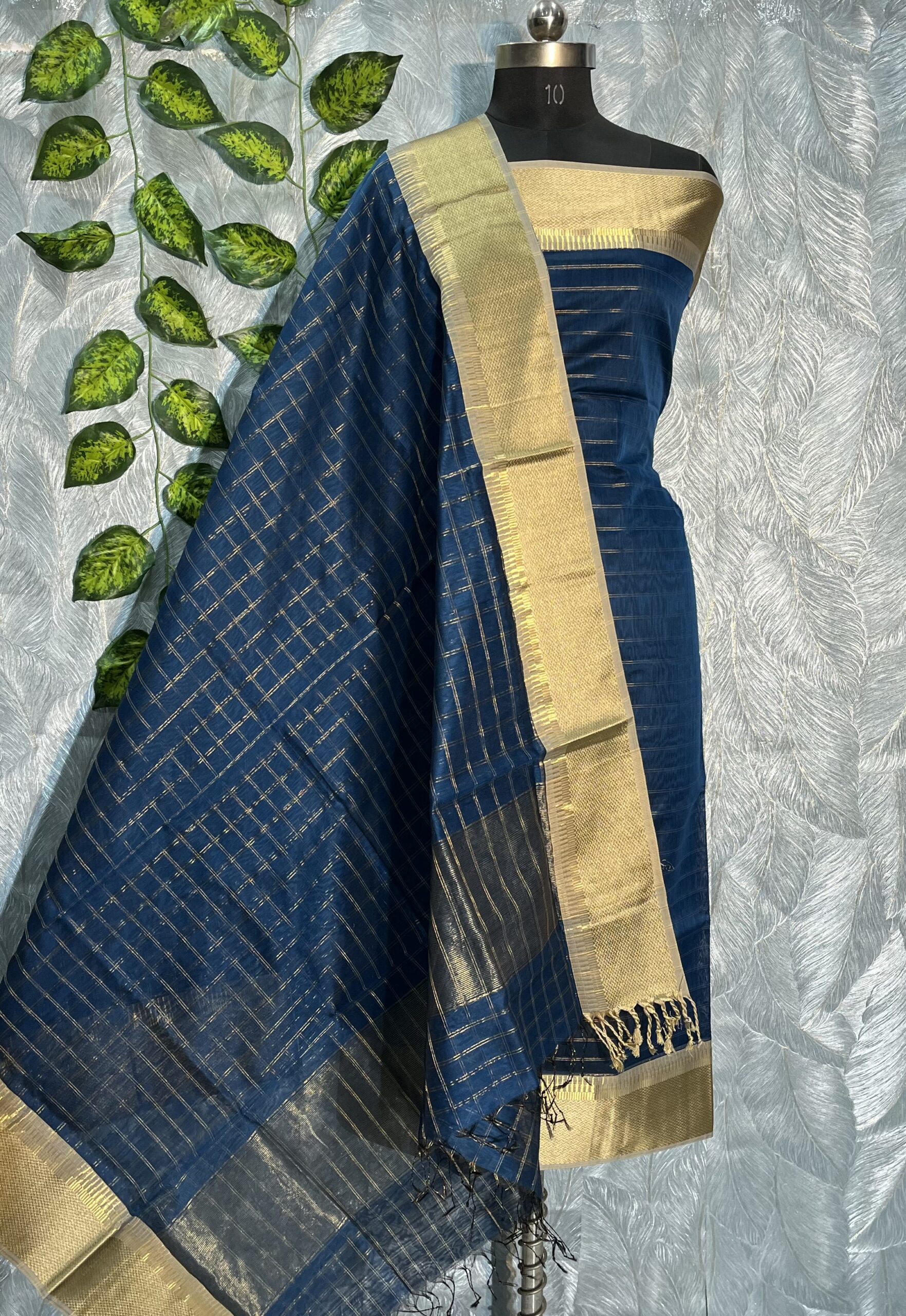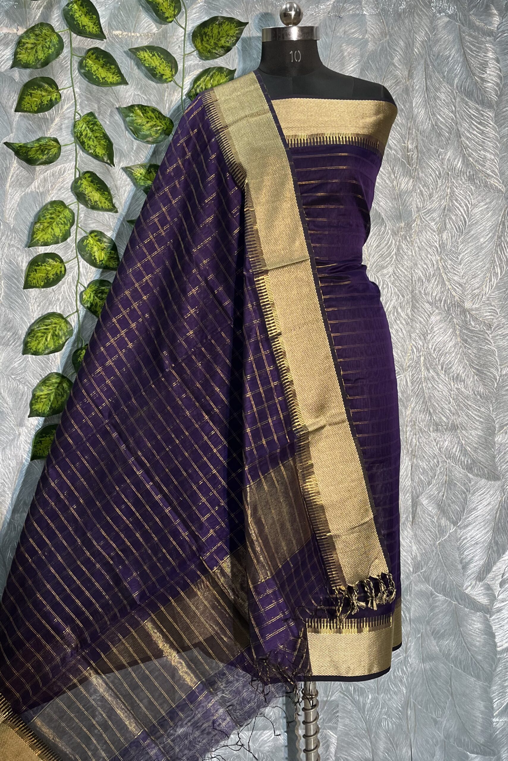 Maheshwari Kali Border Chex Top & Dupatta Dress Material