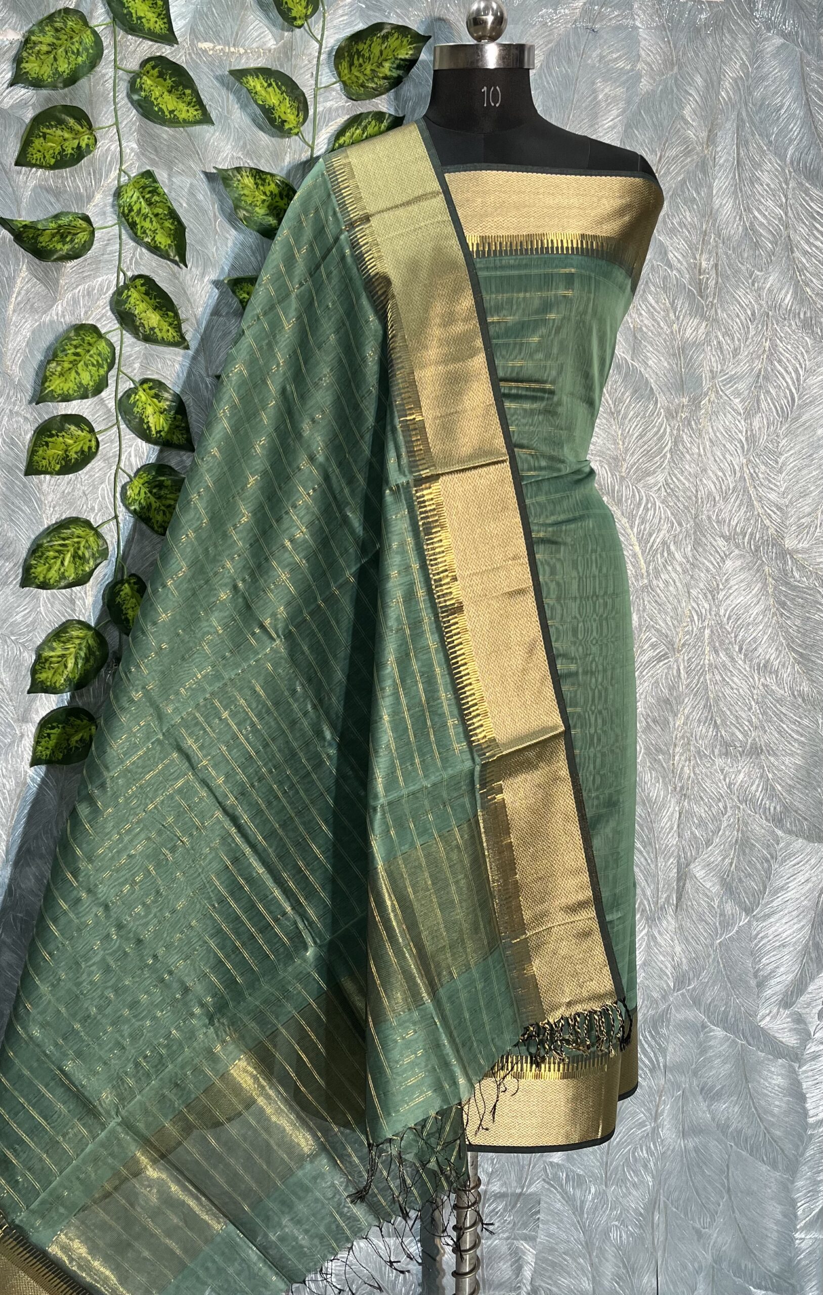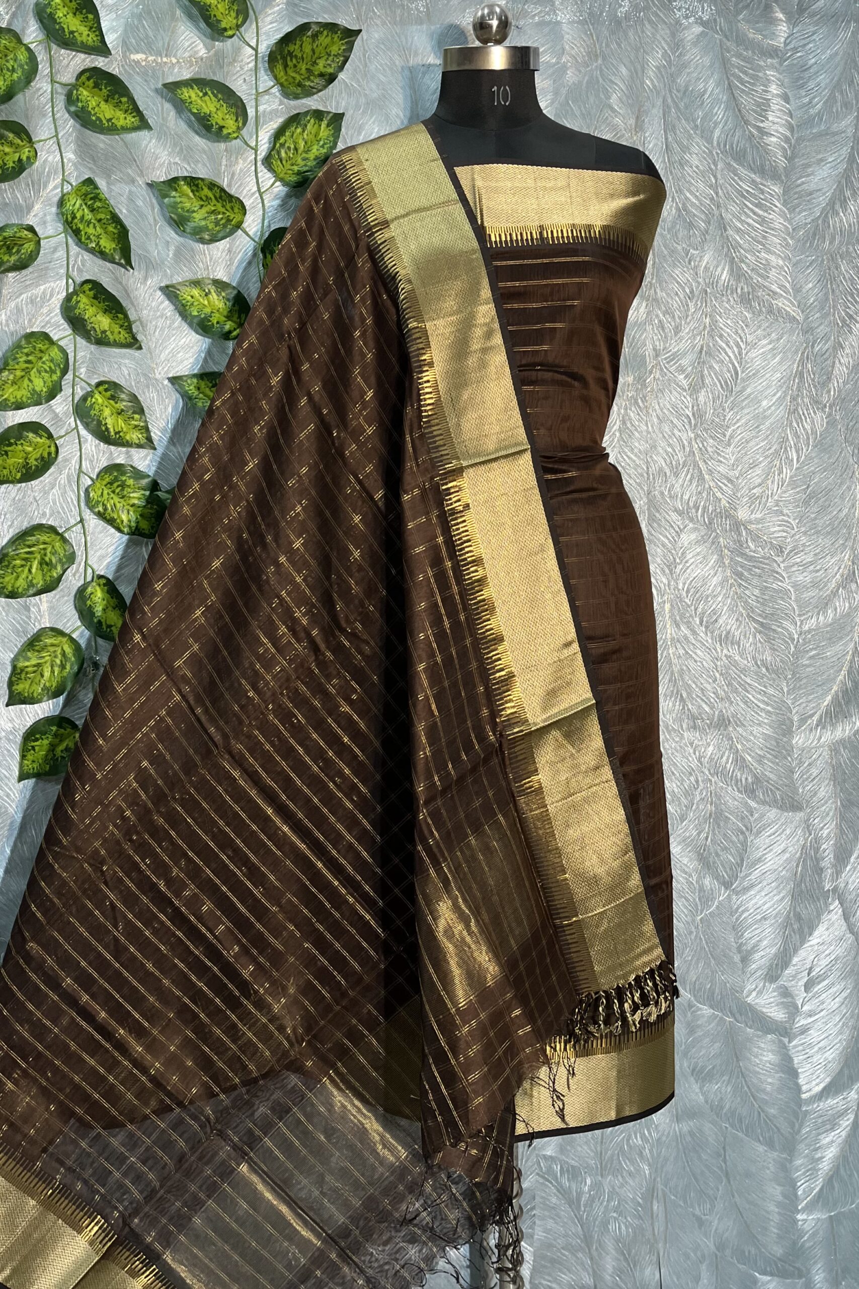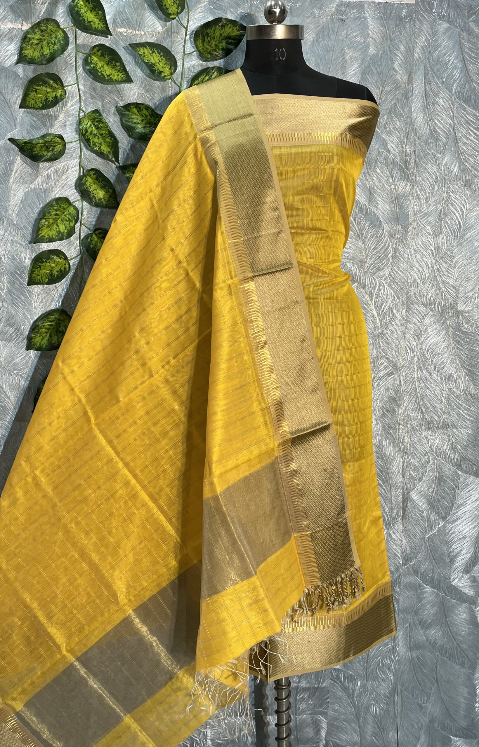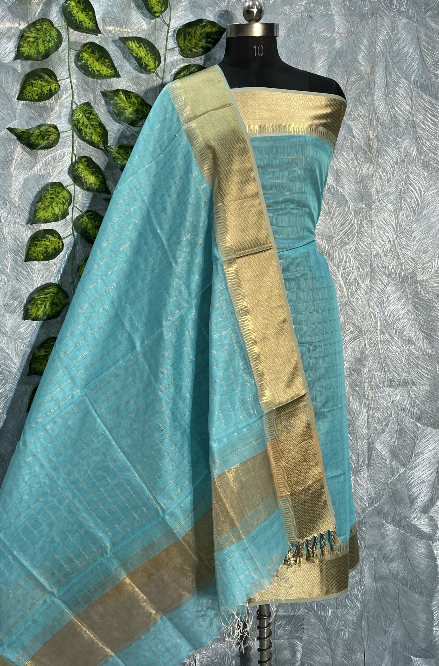 Maheshwari Kali Border Chex Top & Dupatta Dress Material