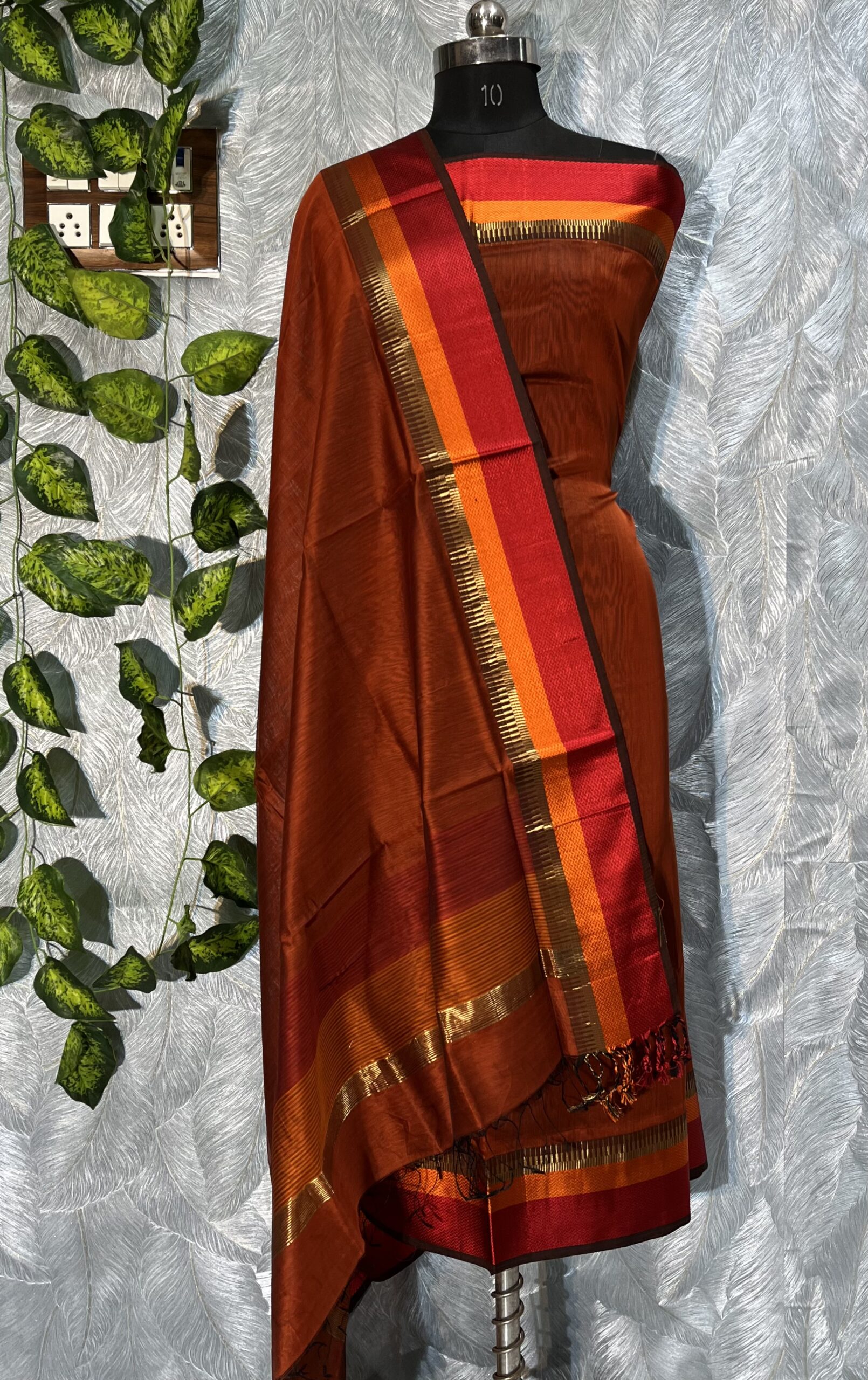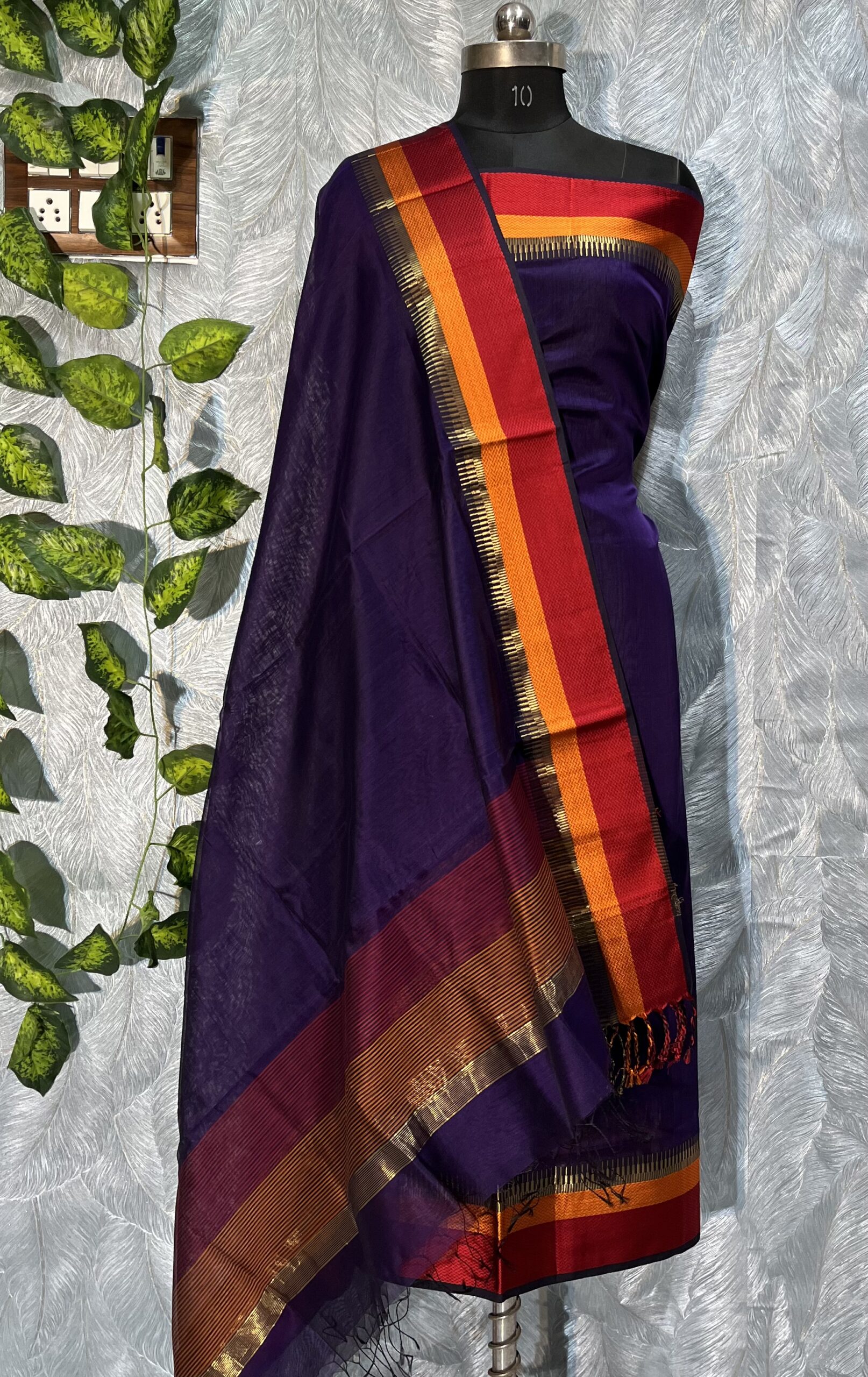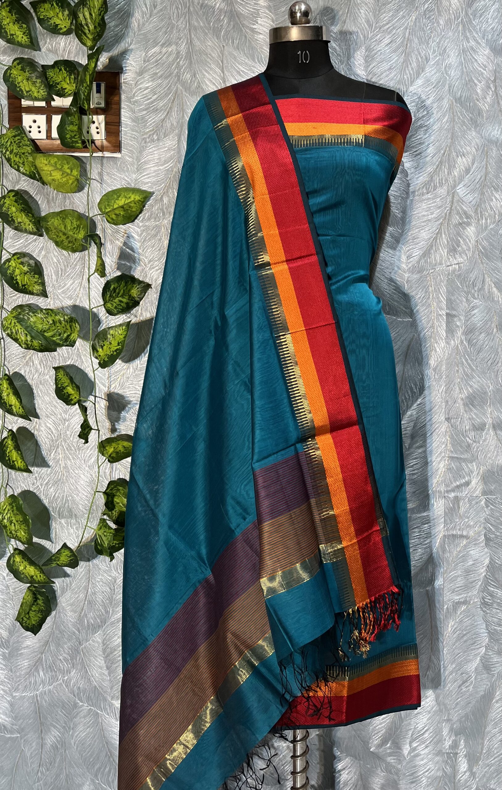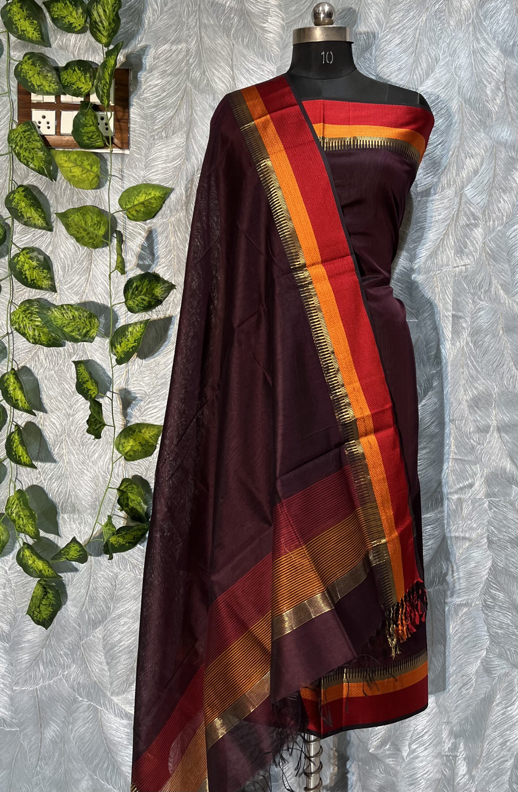 Maheshwari Multi Border Top & Dupatta Dress Material