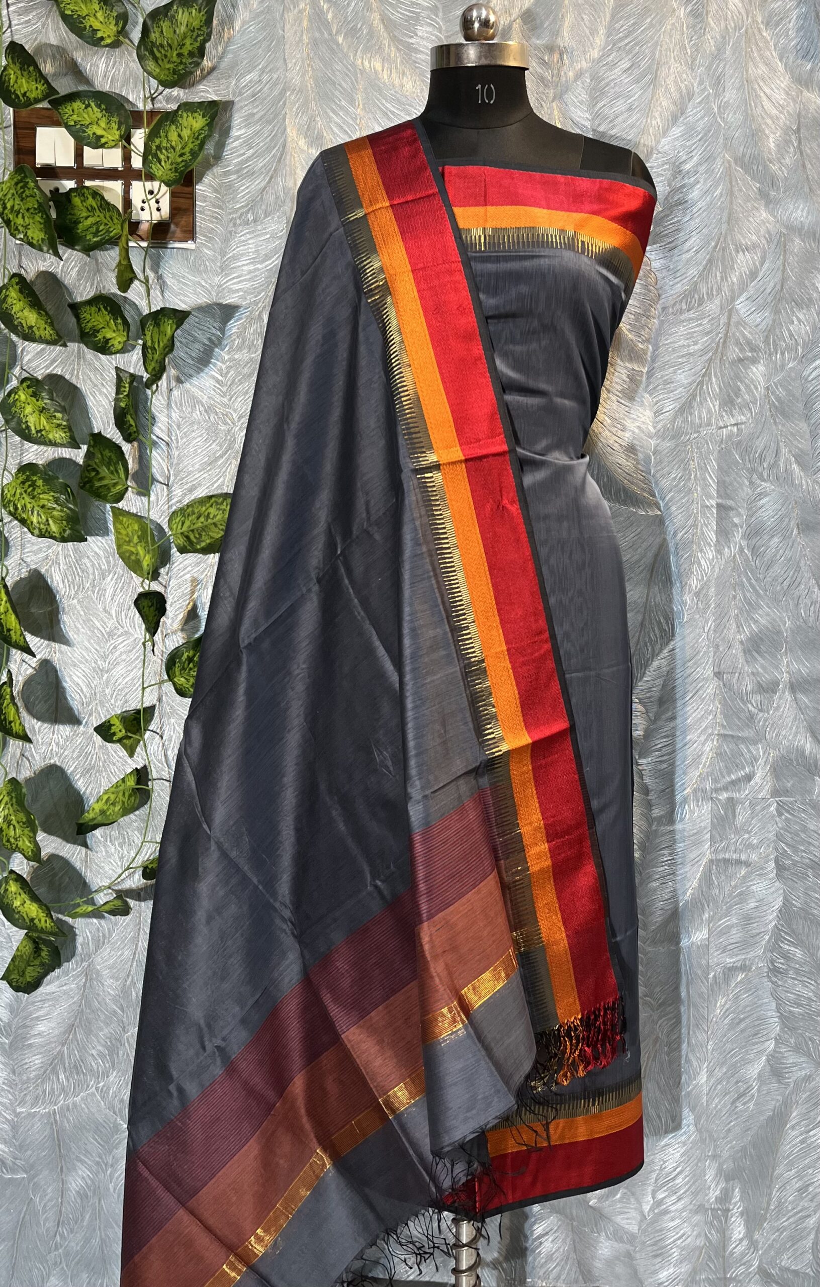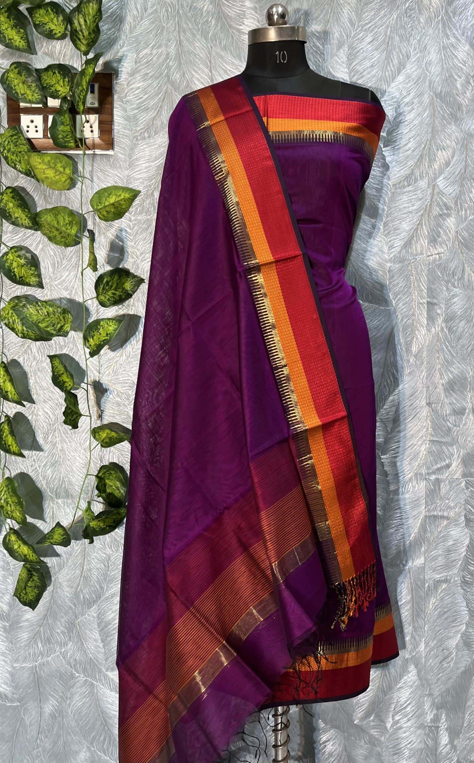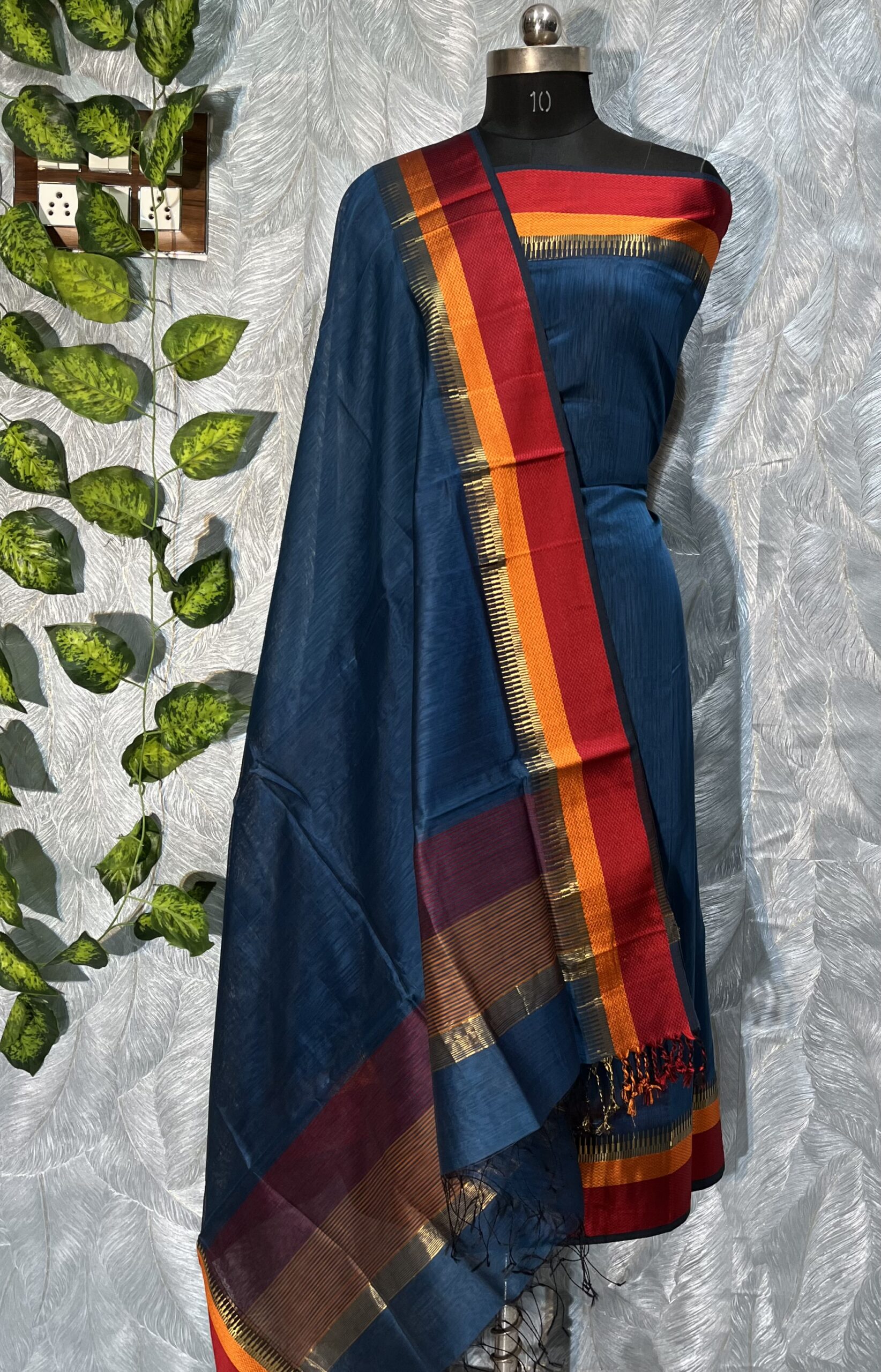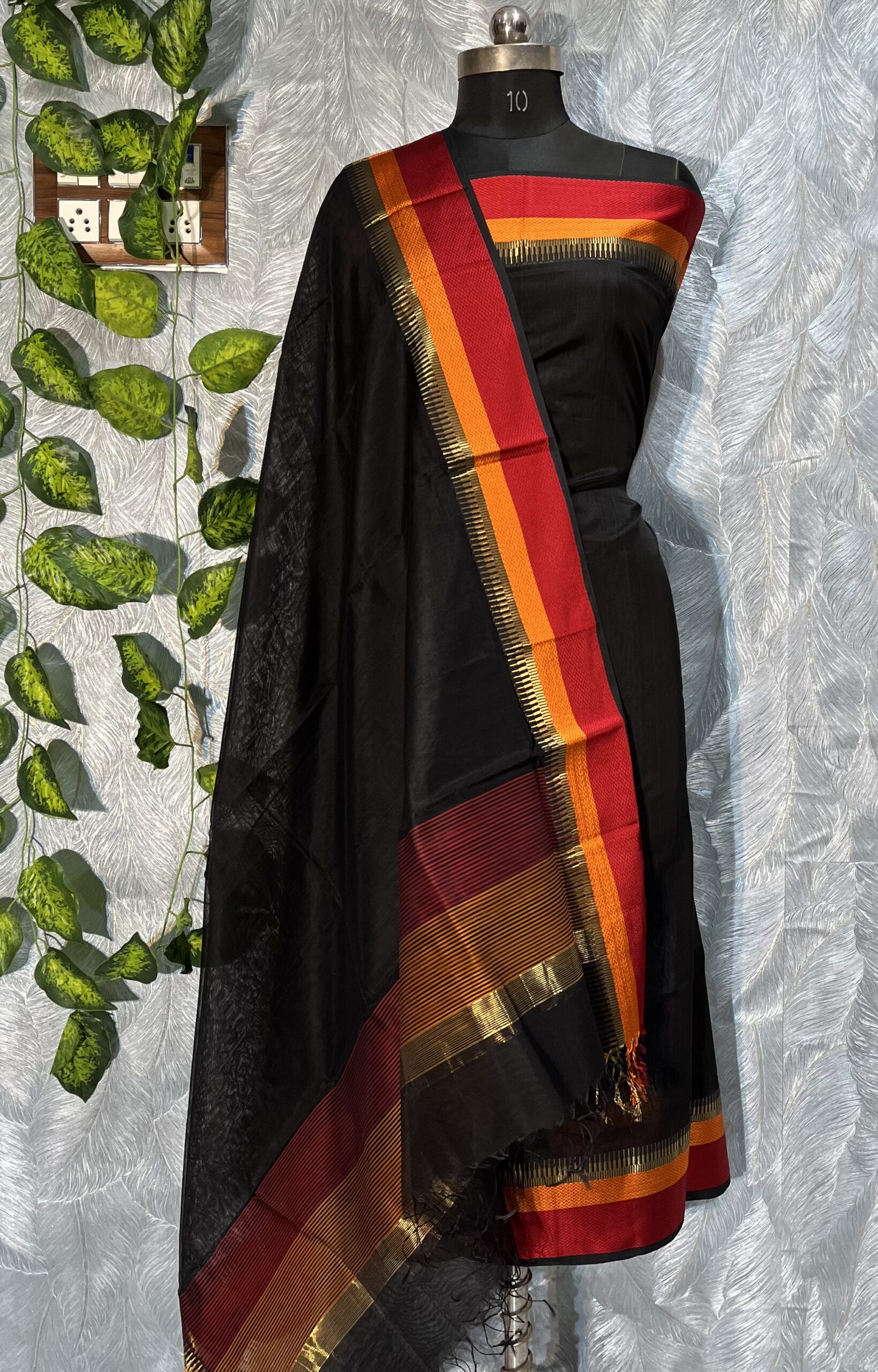 Maheshwari Multi Border Top & Dupatta Dress Material