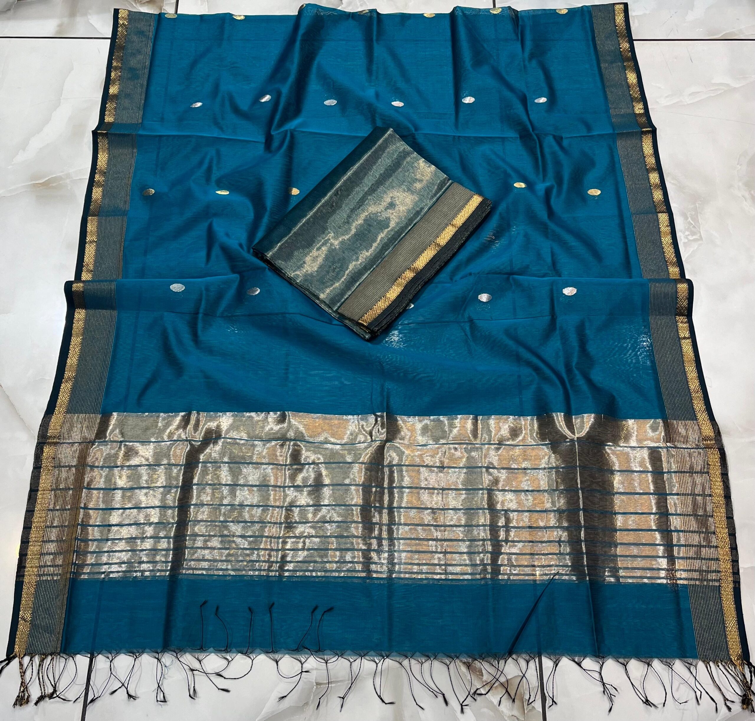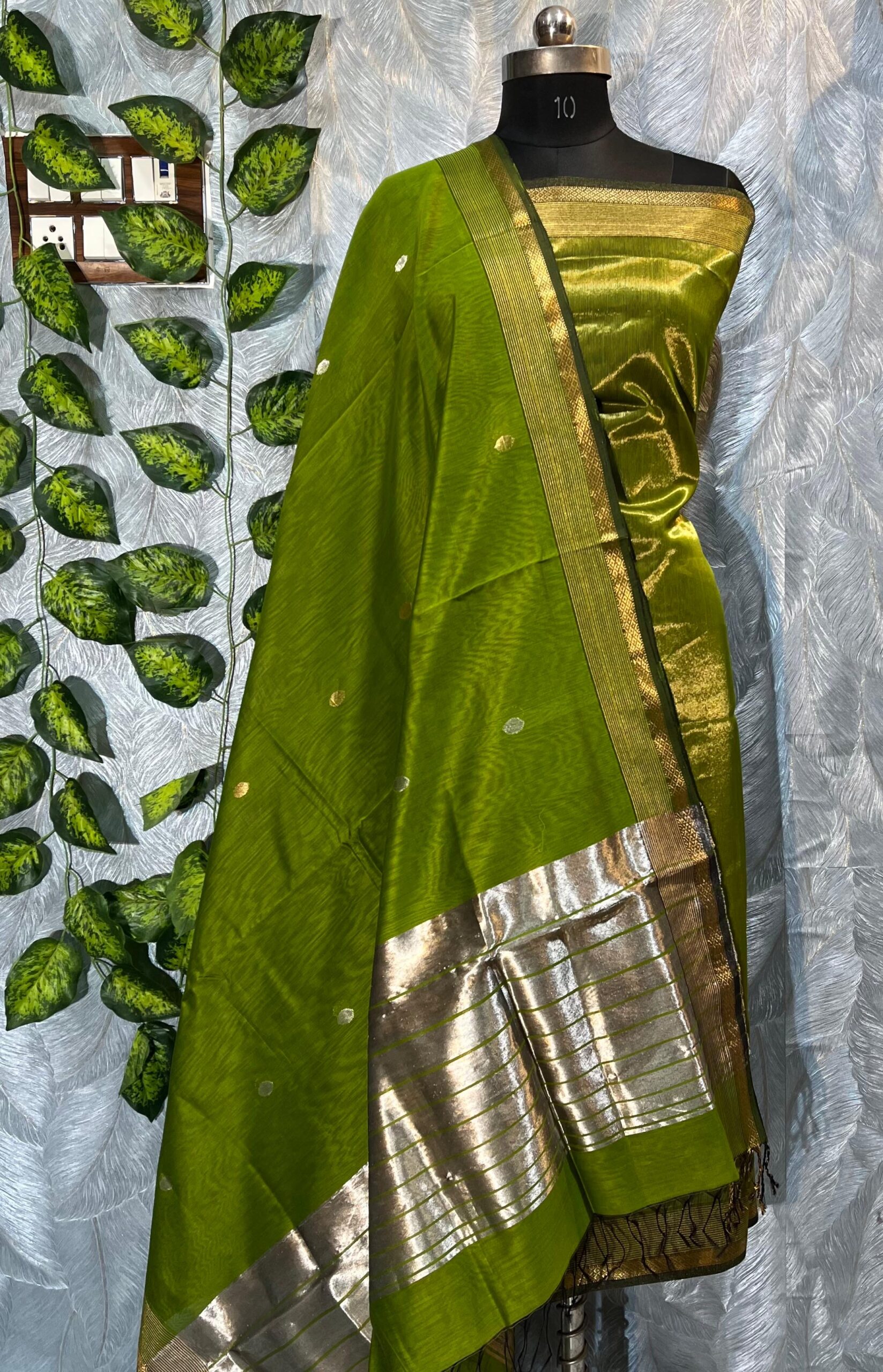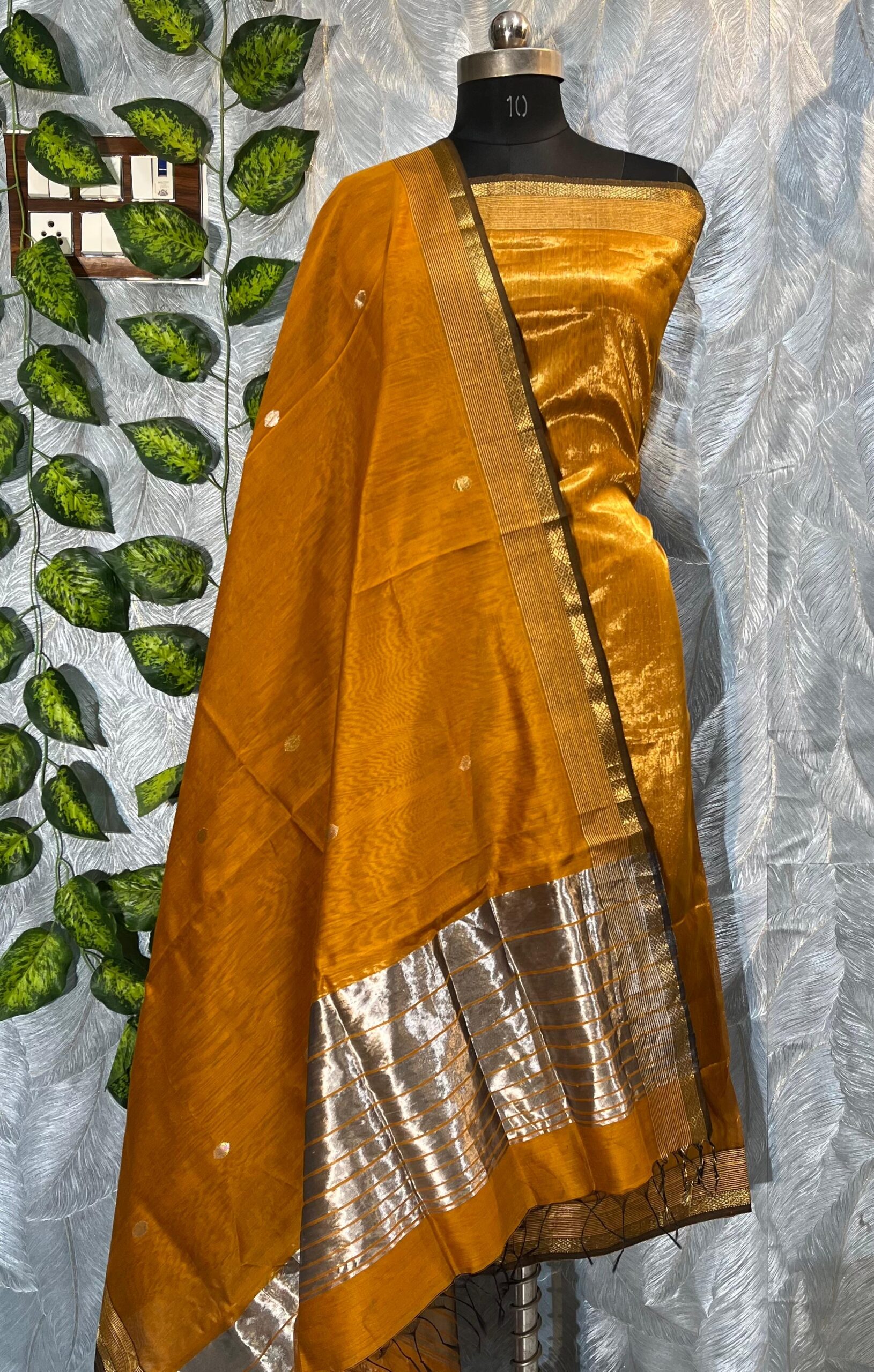 Maheshwari Silver Gold Coin Buti Top & Dupatta Dress Material