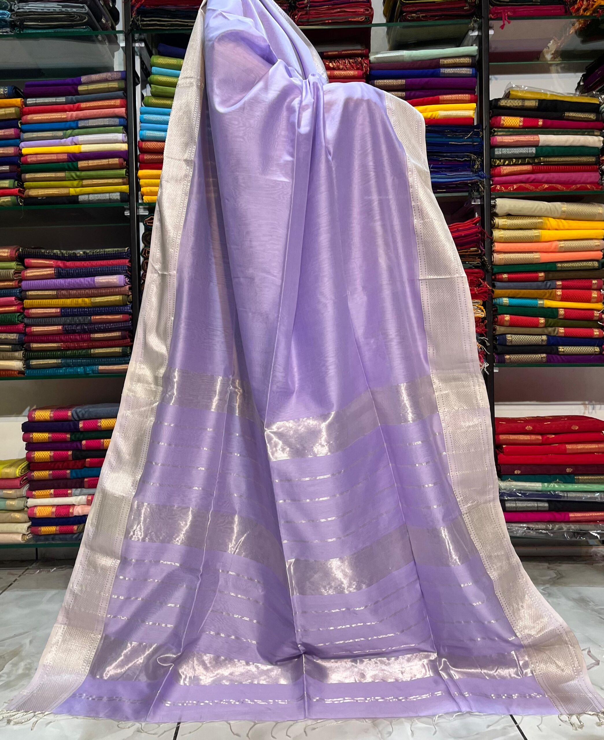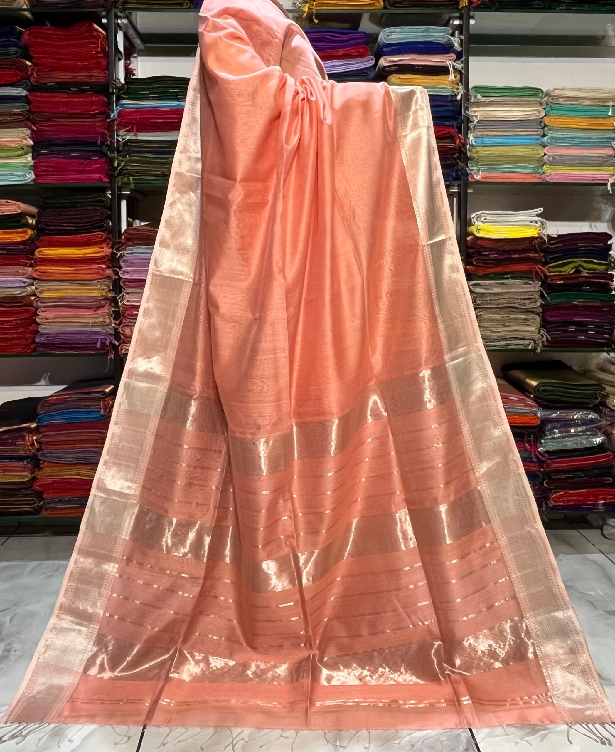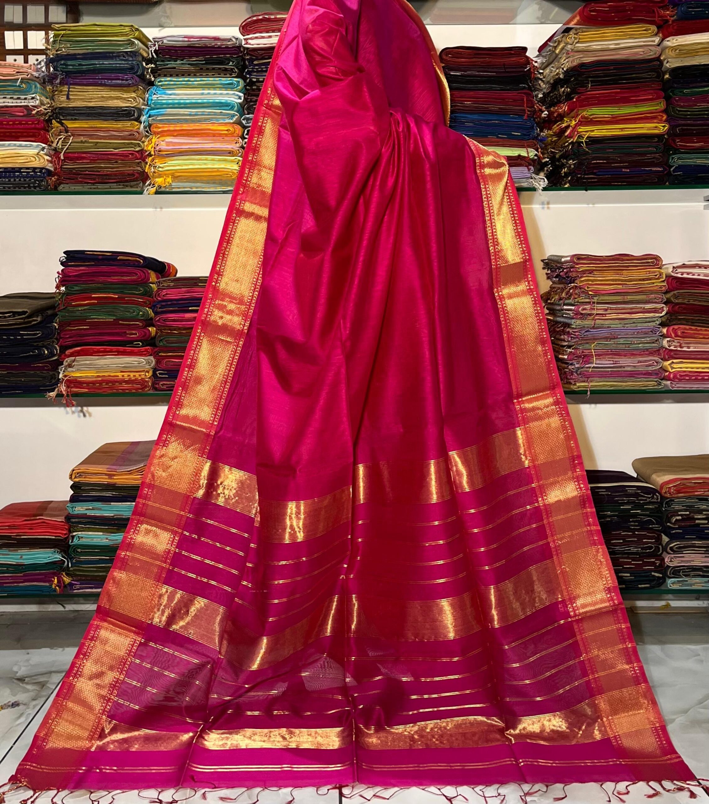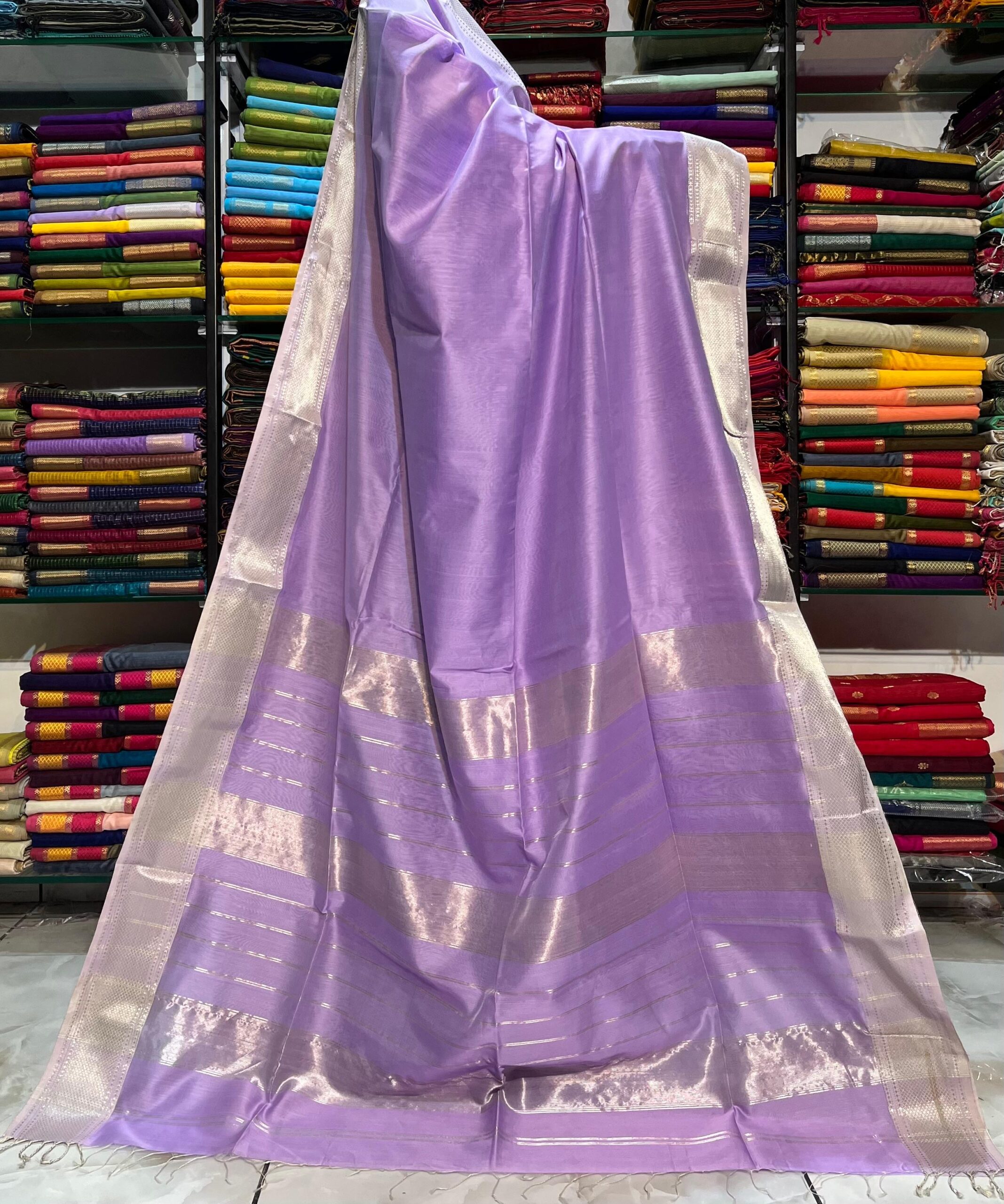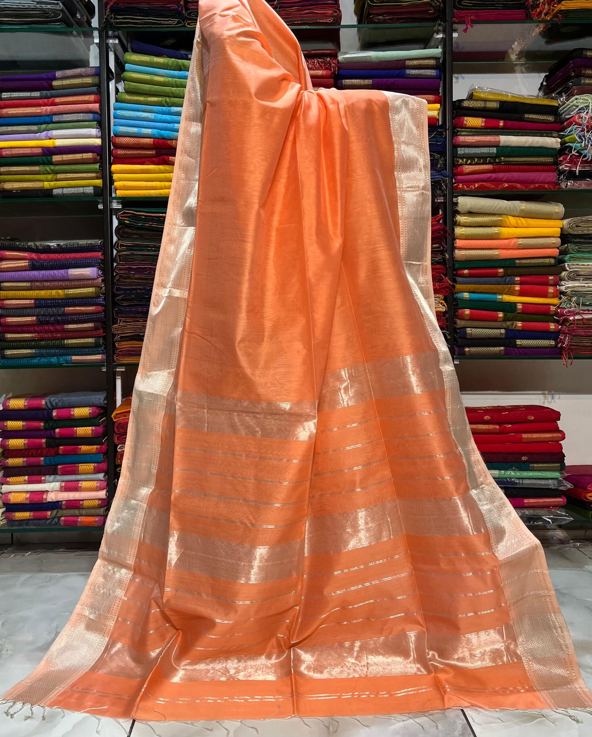 Be the first to review “Maheshwari Silver Zari Hansa Border Saree”