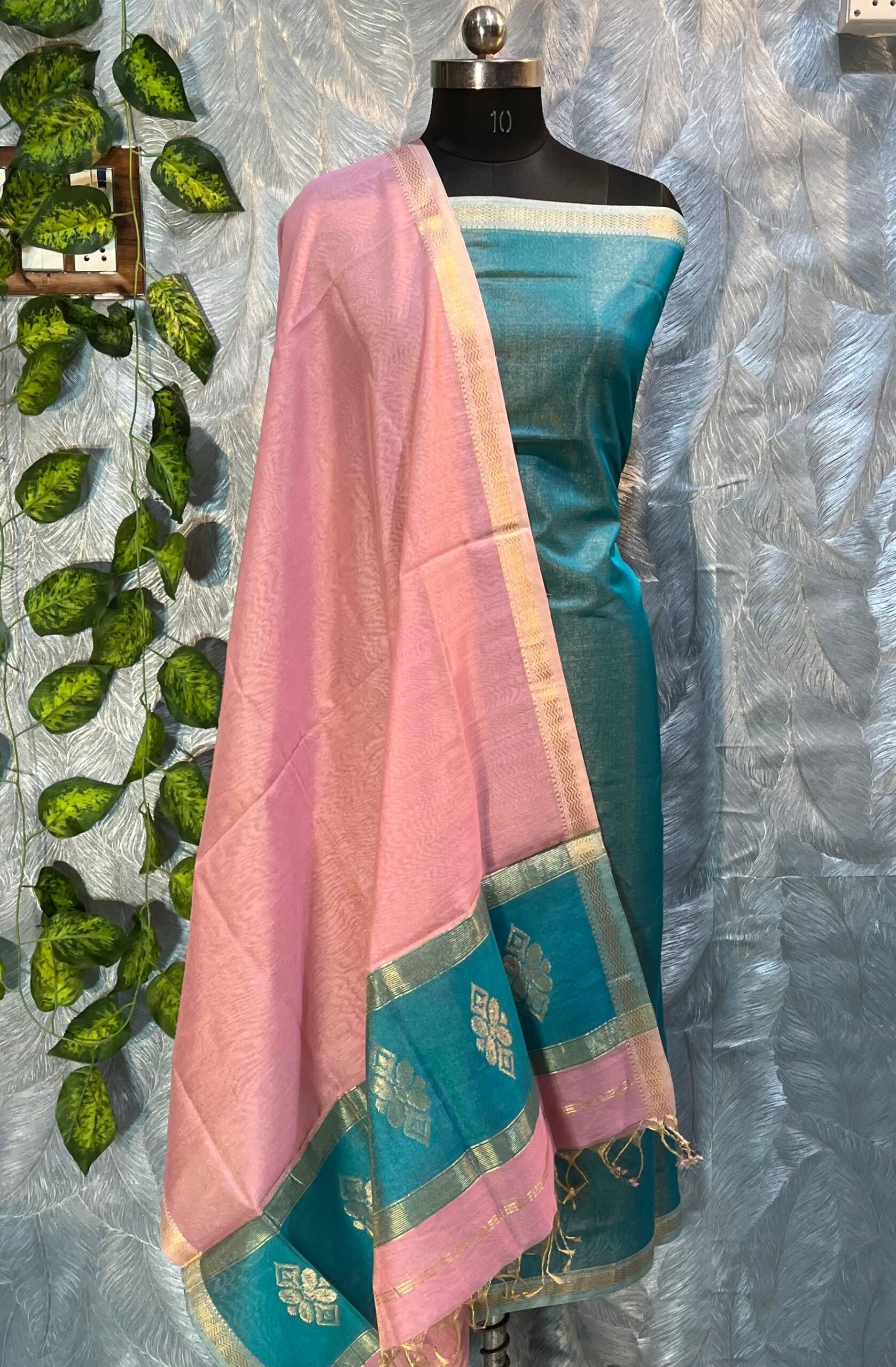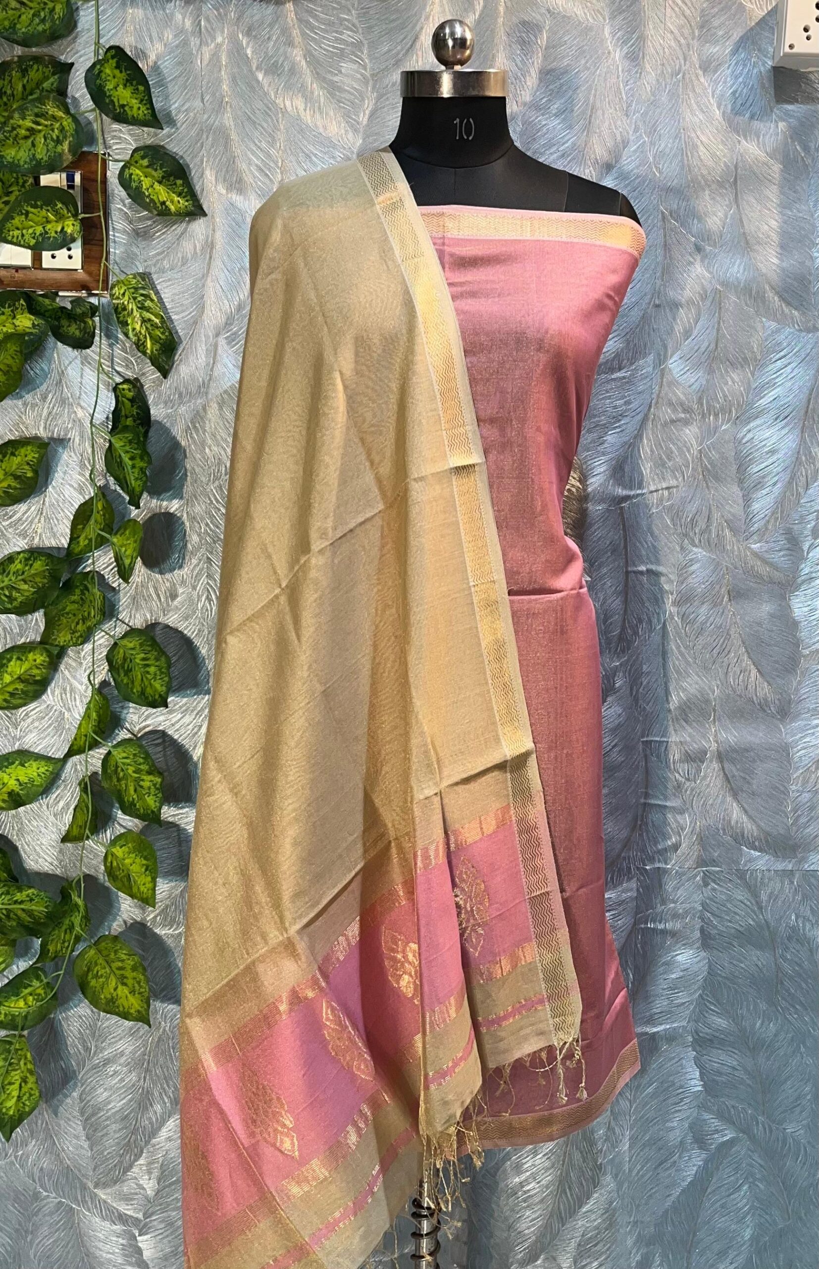 Maheshwari Tissue Buti Top & Dupatta Dress Material